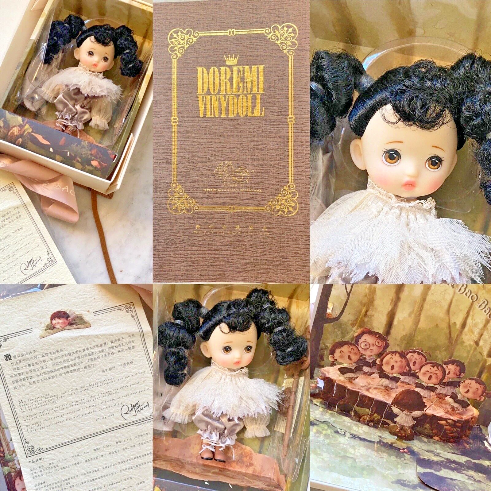 This darling doll is designed and produced by Rodger Lee -- the renown doll artist, Blythe customizer, and creator of the Q Baby Doll... -- this little DoReMi doll is indeed the pre-cursor wee production doll that preceded Q Baby -- made in small quantities she was a very hard doll to get and shares clothes with OB11 dolls. She is jointed on her arms and legs and is made of vinyl, hand painted 13 cm tall, she can be placed on the same size OB11 body, as her clothes will fit and she comes with a bonus of an illustrated pop-up book and packed in a souvenir slip case- ONLY ONE REAMAINS AVAILABLE in the sold out edition. WAS $320 NOW on SALE