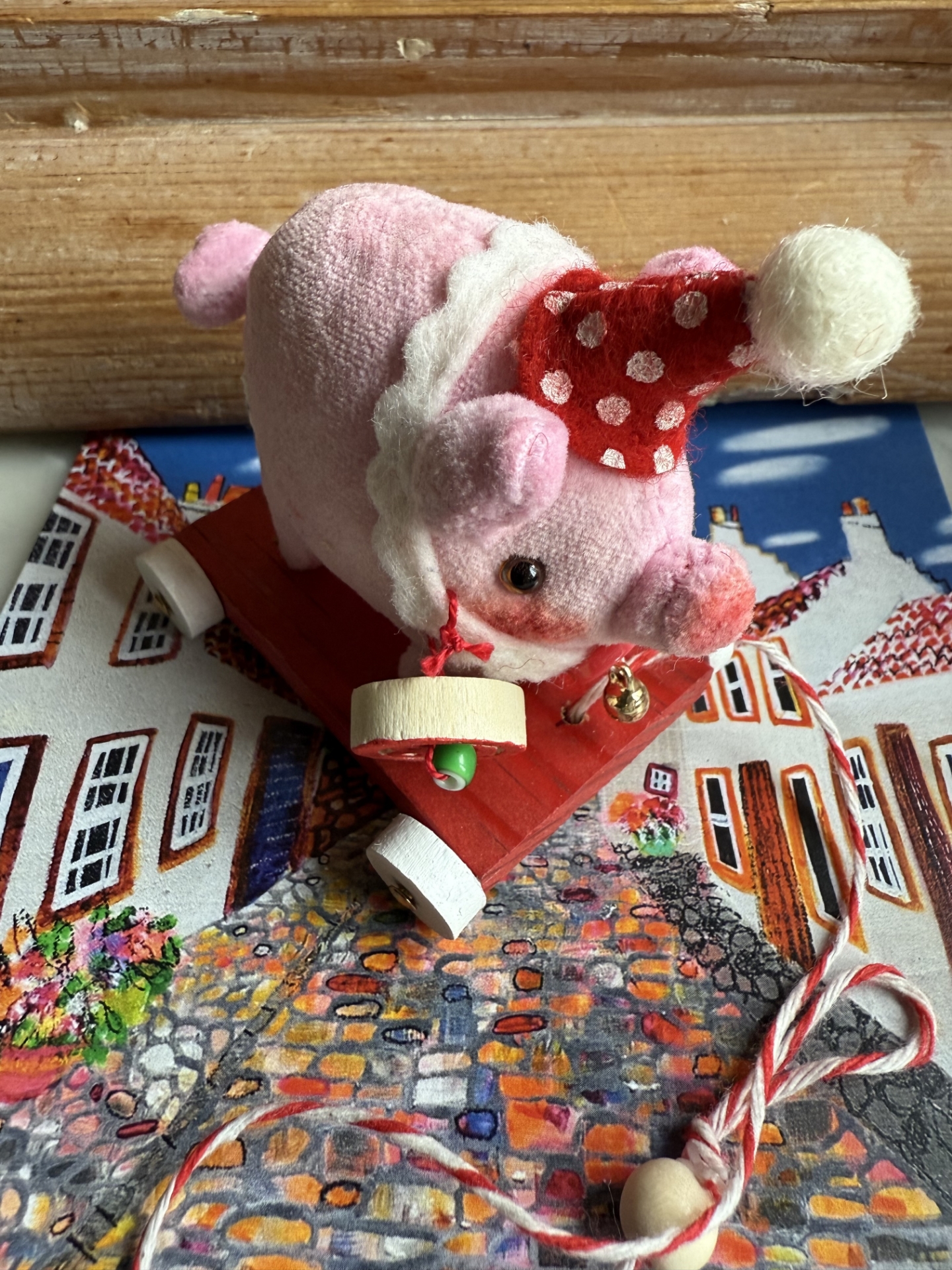 Piggy Porky Pig - OOAK Wee Pulltoy - by Jody Battaglia