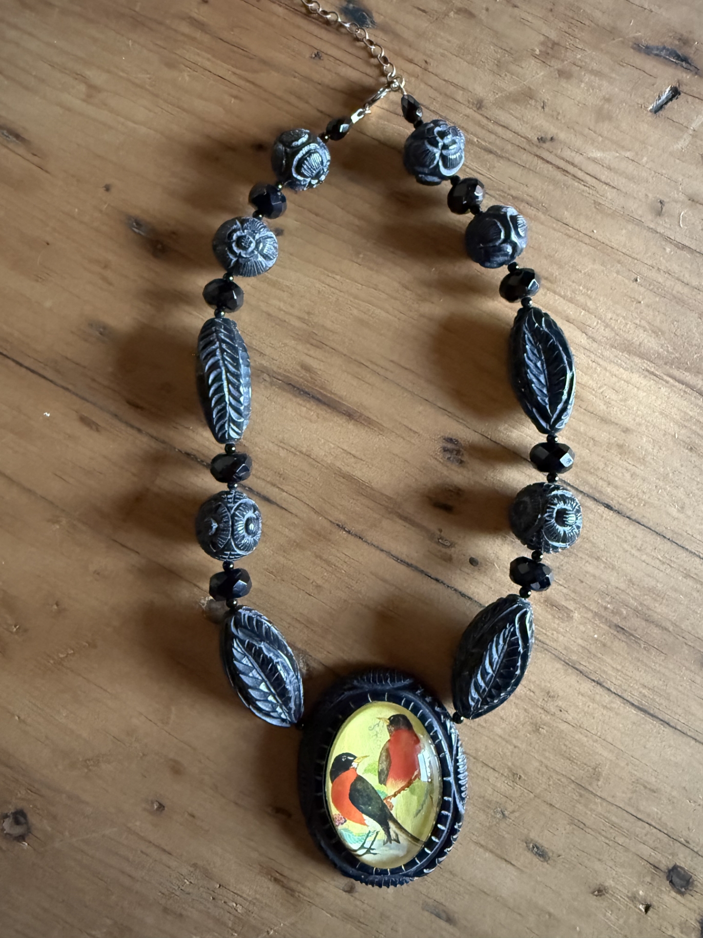 fabulous and bountiful... chunky bead, tumbled resin beads add style and swing, image under bubble, 16” (with 2” silver extender to 18”) pendant measures 2" , created in San Francisco by Hotcakes Design, WAS $104, NOW on SALE... $78 -- LAST ONE in stock - our shop sample