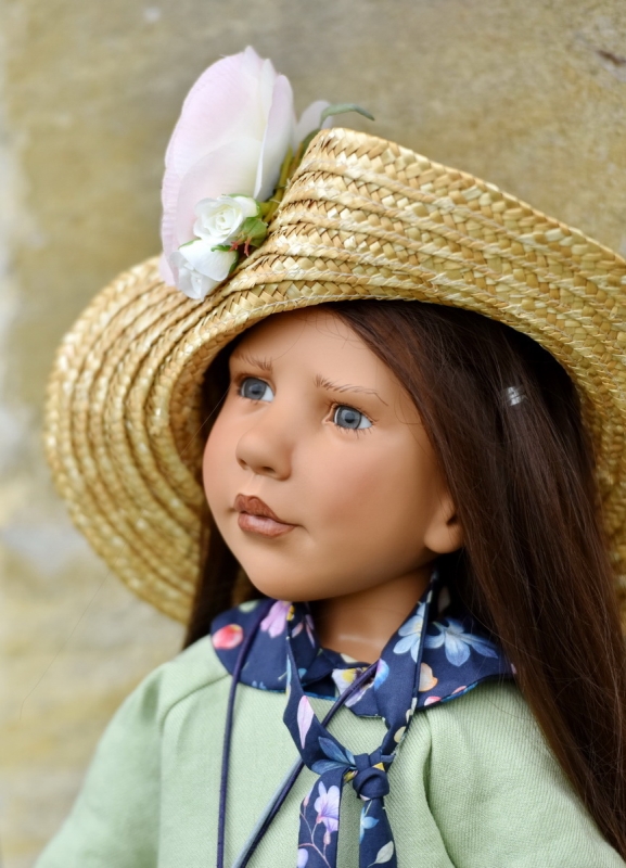 a moment of childlike wonder captured...what a wonderful expression -- and in the new CAPPUCHINO vinyl......an edition of just 35 dolls worldwide, she measures75cm or 29.5". Created by artist Nicole Marschollek-Menzner of Zwergnase Dolls. She has a vinyl head, arms, legs and chest plate with a soft ultrasueded body. Her lush wig is finely made and she has hand-blown glass eyes from the renown makers in Lauscha, Germany. Lovely real leather shoes and all manner of lovingly appointed and well tailored details. Made in Germany. Signed hang tag and emblem branded box with branded couture ribbons...if you would like to arrange a layaway with part payment now and part on shipment...or any other arrangement... email Jen@EarthAngelsStudios.com...IN STOCK AND READY TO SHIP