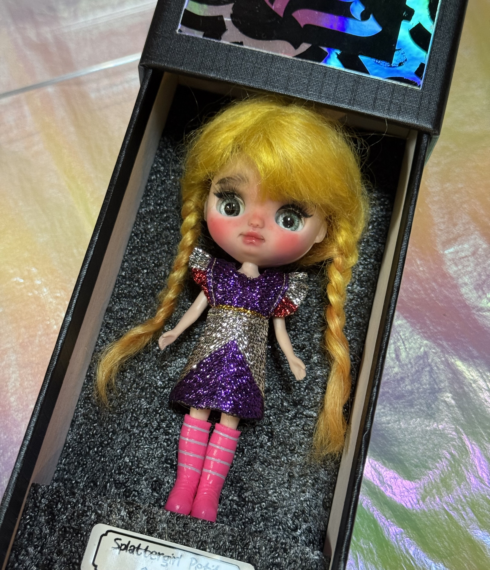 A complete one of a kind art doll made exclusively for Earth Angels Studios by Ayin Gurling of SplatterGirl UK -- she travels in a custom logo box... shown with her friend "Danica" who is available separately.